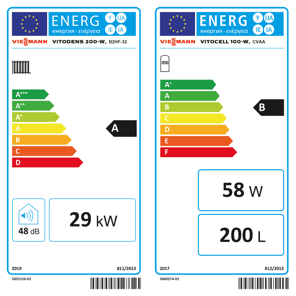 - Jahreszeitbedingte Raumheizungsenergie-Effizienz ηS bis 94 % (Label A).